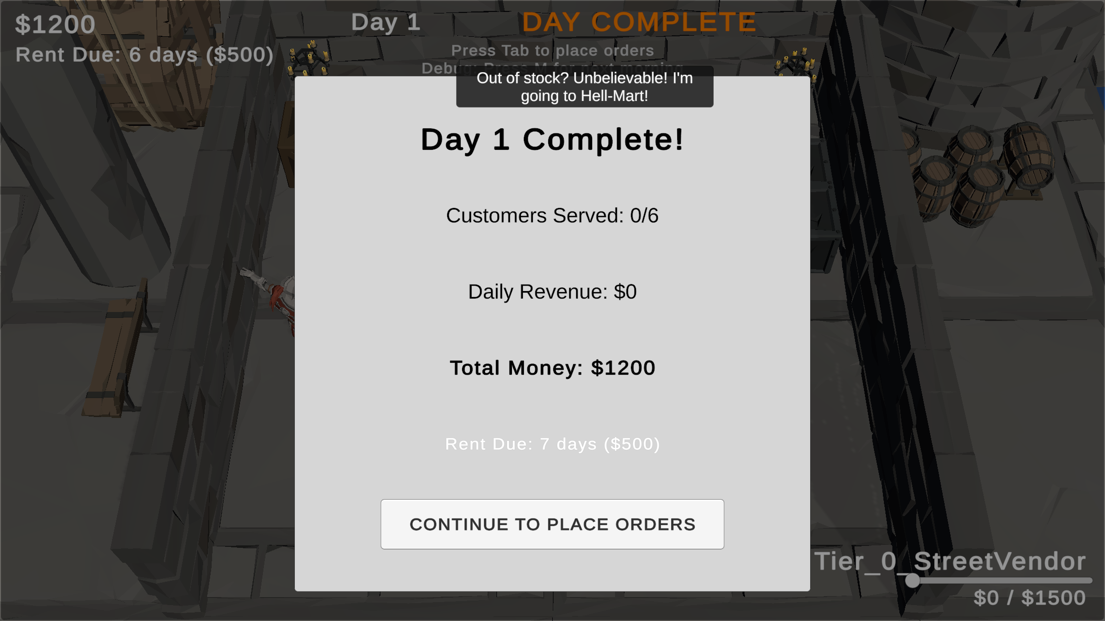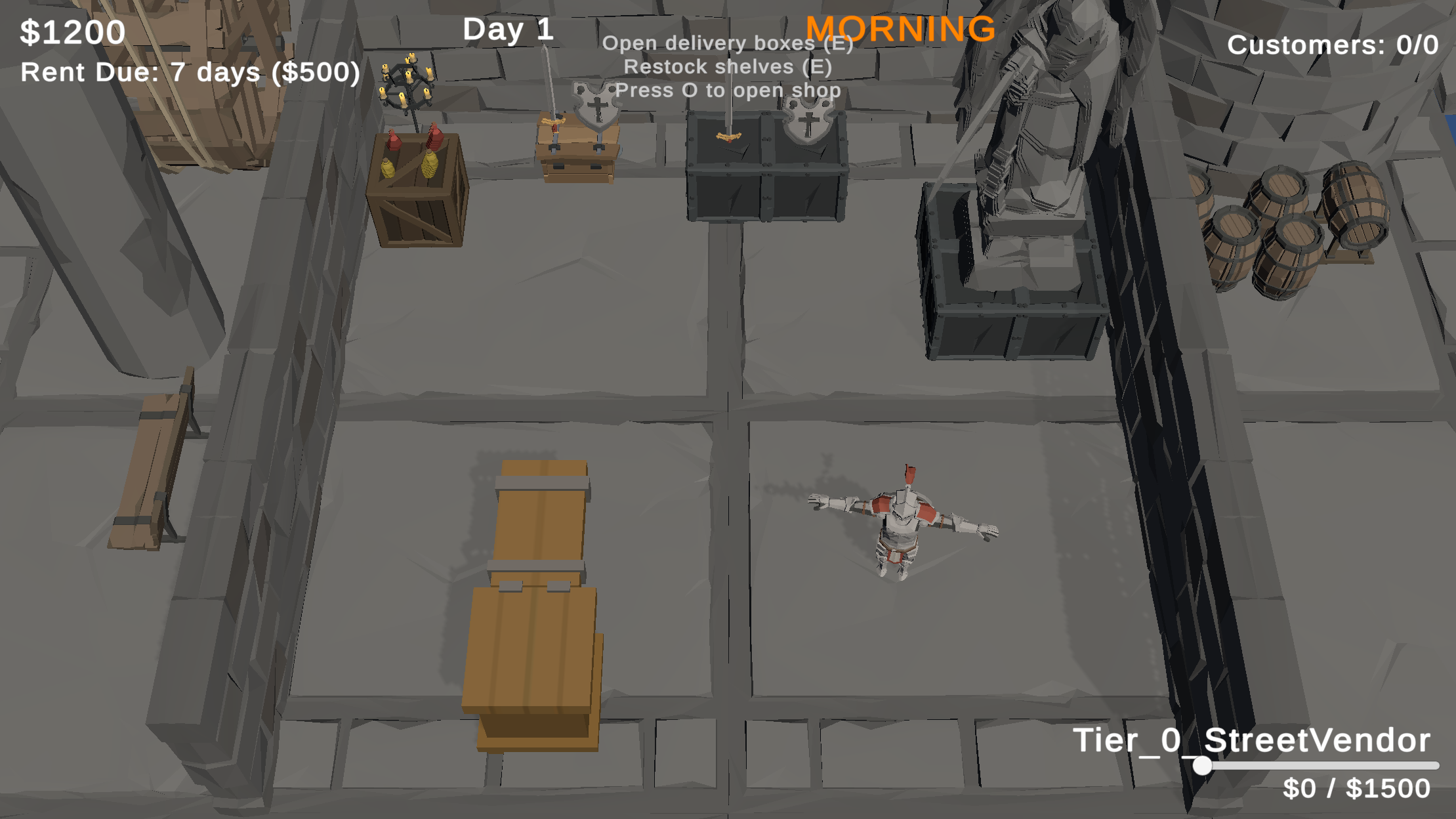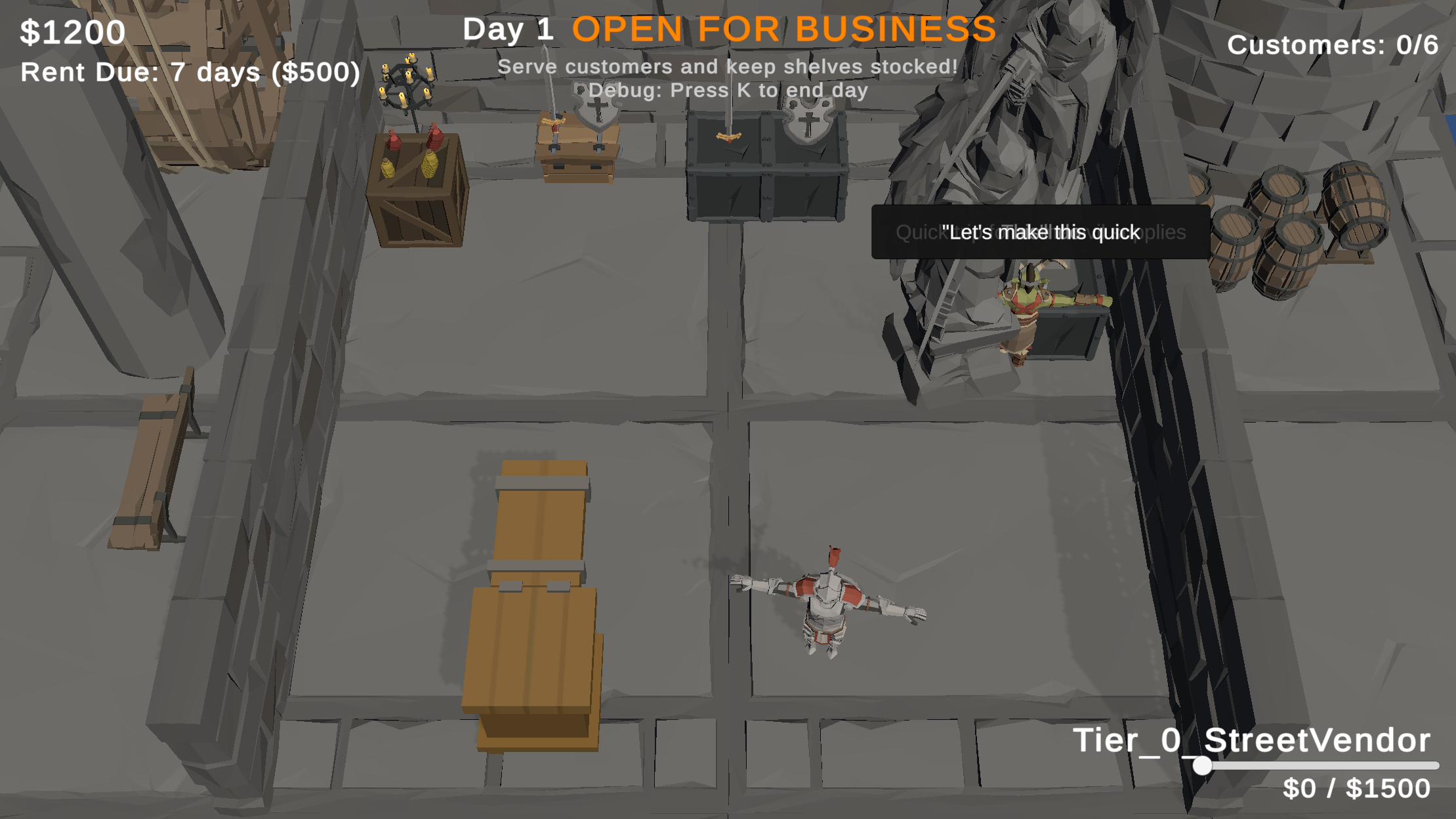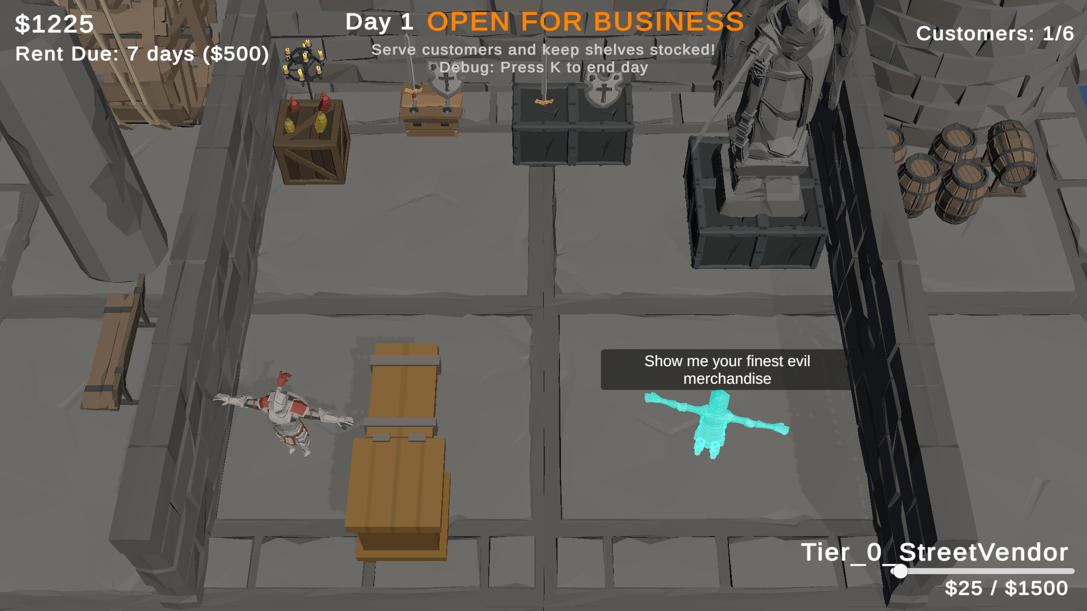Basic Systems Implementation - Improvement of customer AI pathfinding, buy/sell interactions, inventory management. The unsexy but necessary foundation work.